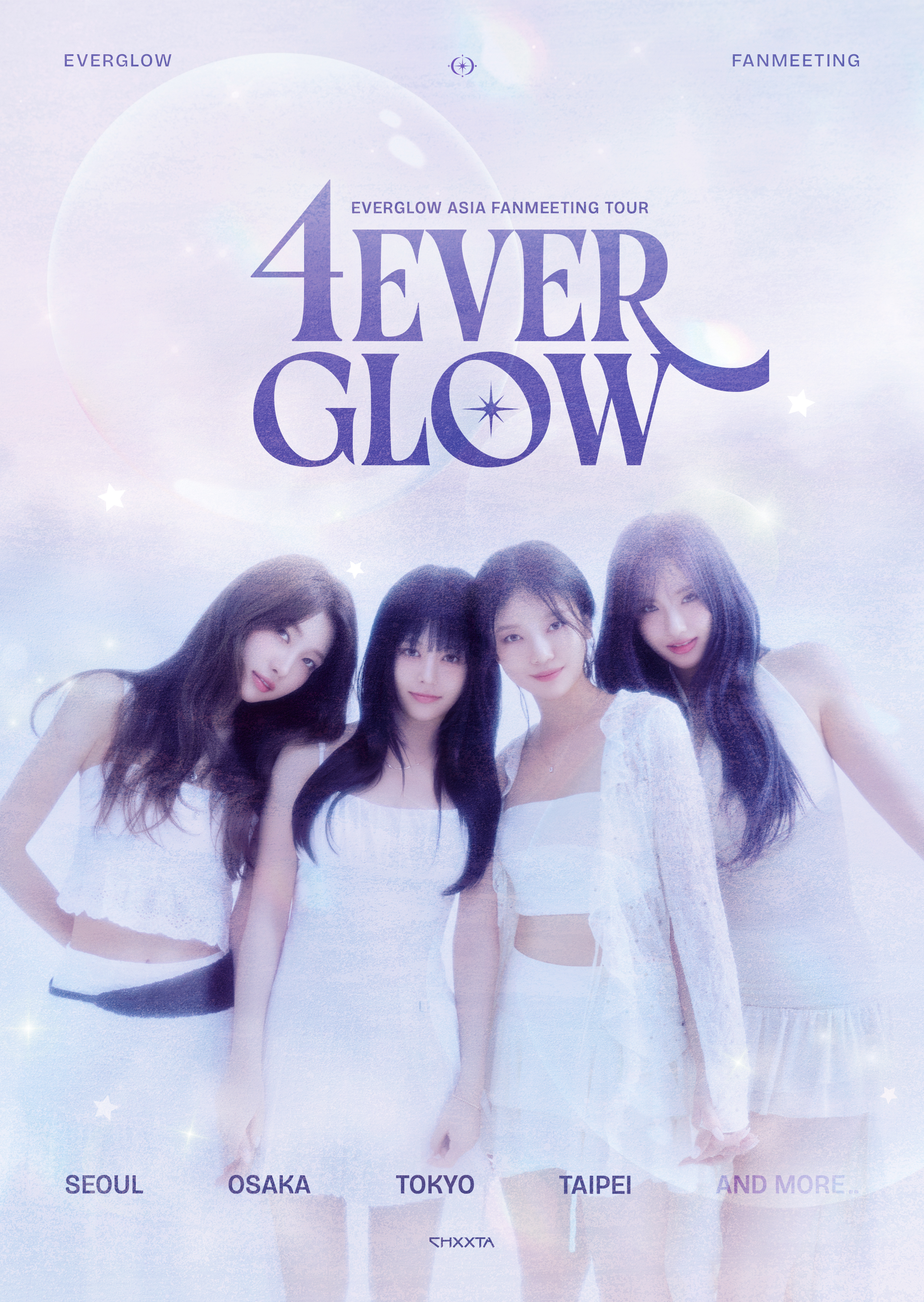 EVERGLOW (에버글로우) é um grupo sob a CHXXTA Company. O grupo contém, atualmente, quatro membros: E:U, Sihyeon, Onda e Aisha. Elas estrearam em 18 de março de 2019. Em 13 de maio de 2025, foi anunciado que todos os membros do EVERGLOW deixariam a Yue Hua Entertainment após o término de seus contratos em junho. Em 01 de agosto de 2025, Mia e Yiren anunciaram sua saída do grupo. Em 10 de setembro, a CHXXTA Company anunciou que as quatro integrantes restantes do EVERGLOW assinaram com eles para continuar suas atividades como um grupo de quatro integrantes.